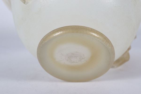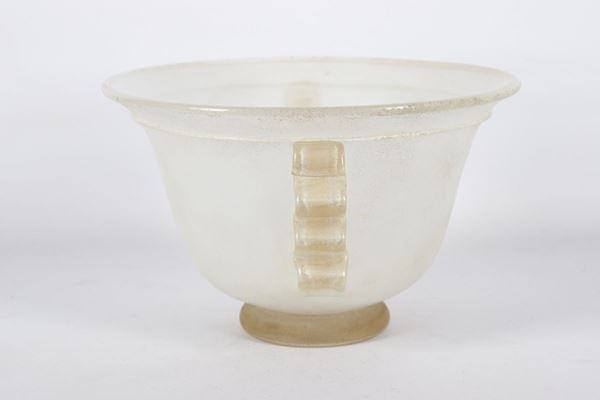 Vaso a coppa in vetro soffiato di Murano color lattice. Firmato Mario Poggi