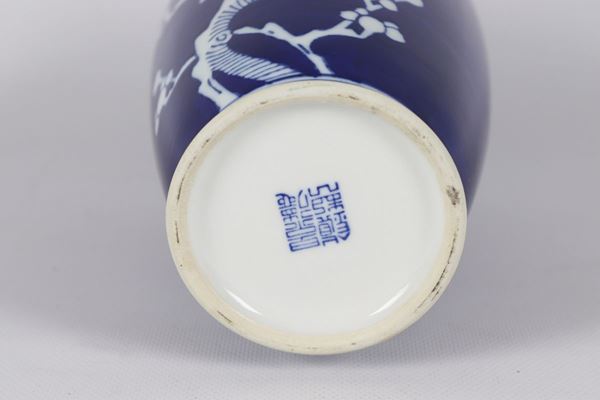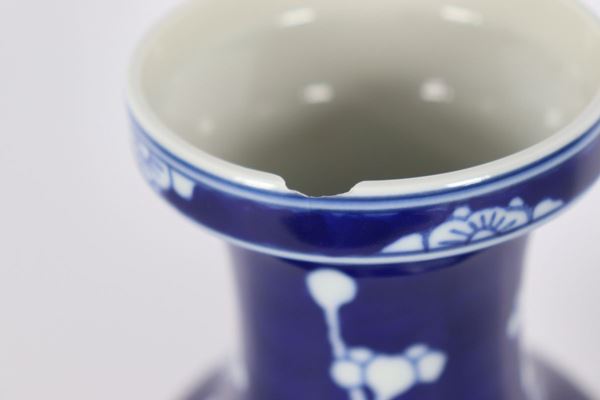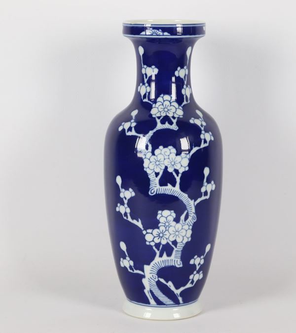 con decorazioni bianche a fiori e rami intrecciati. Il bordo del collo presenta mancanza, altezza cm 31.