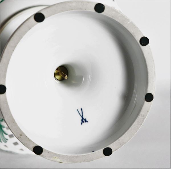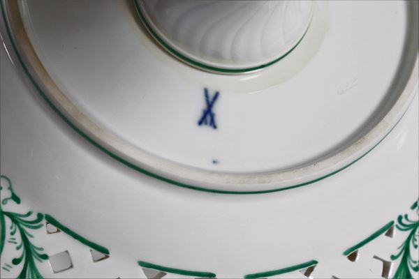 con decorazioni floreali in verde, due piani con finale a cesto. Diametro cm 25 x 44 h.