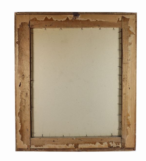 antica cornice detta "a cassetta" in legno dorato ed intagliato, cm 77 x 64.