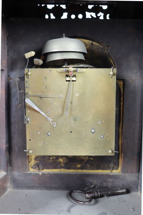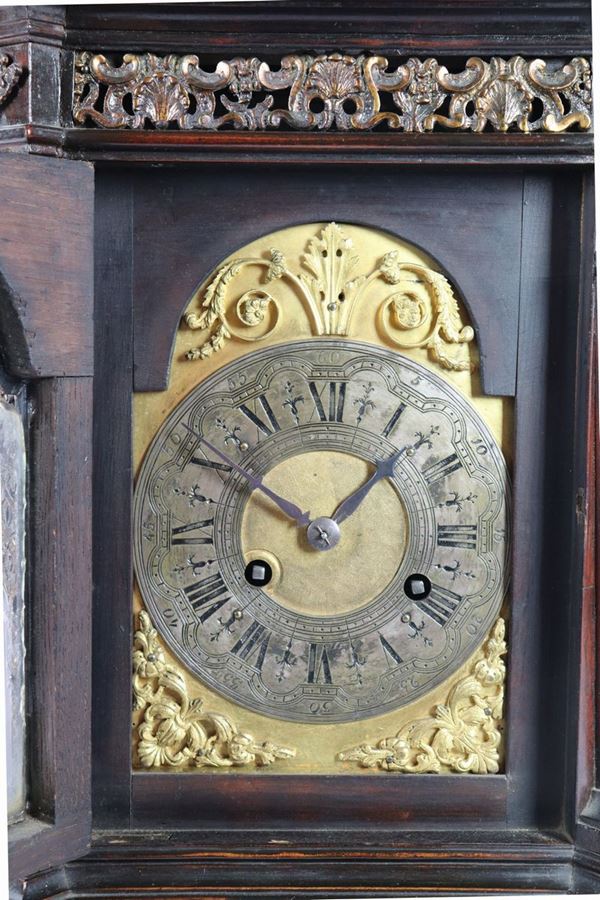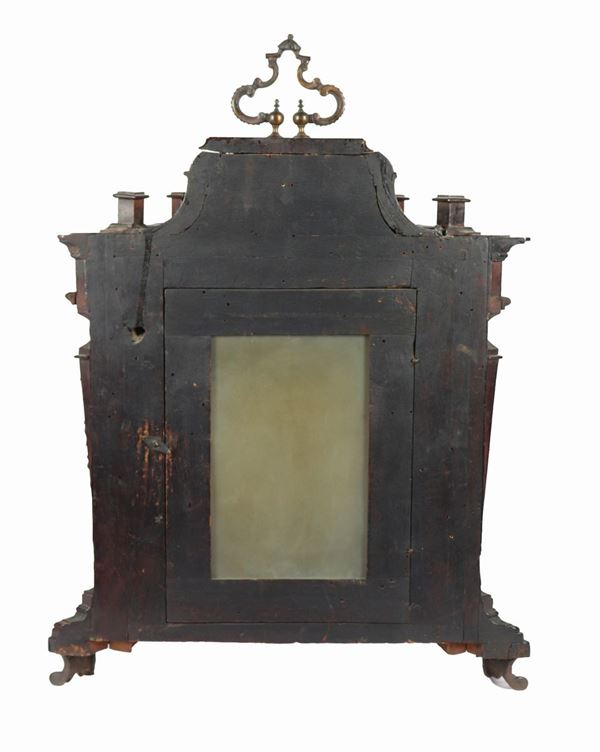 con quadrante in bronzo dorato, sbalzato e cesellato, suoneria a campana mancante del pendolo. Non funzionante, da revisionare, cm 40 x 20 x 54 h.