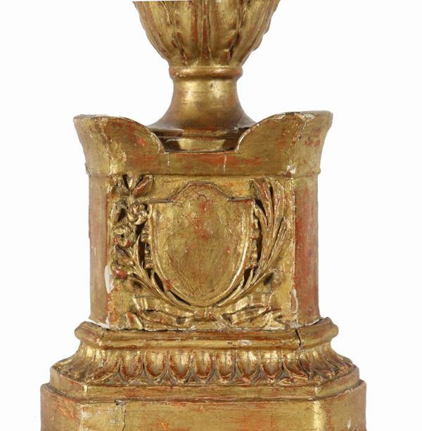 Antico torciere in legno dorato ed intagliato a motivi Luigi XV