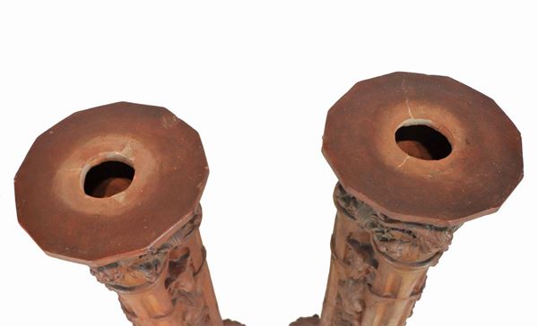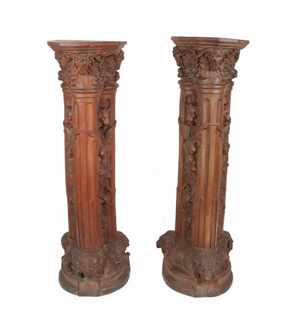 Coppia di colonne Liberty in terracotta