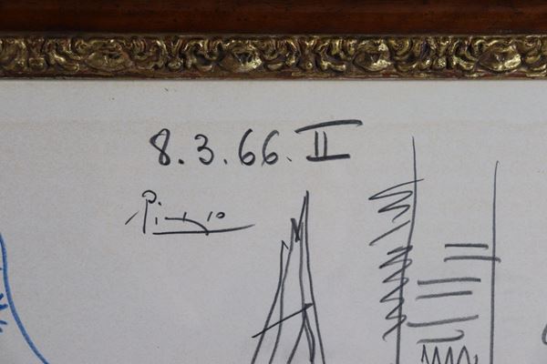 Coppia di riproduzioni su carta di disegni di Picasso "Nudi astratti"