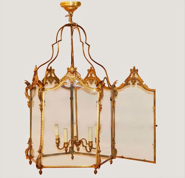 Grande lanterna di linea Luigi XV in bronzo dorato e cesellato