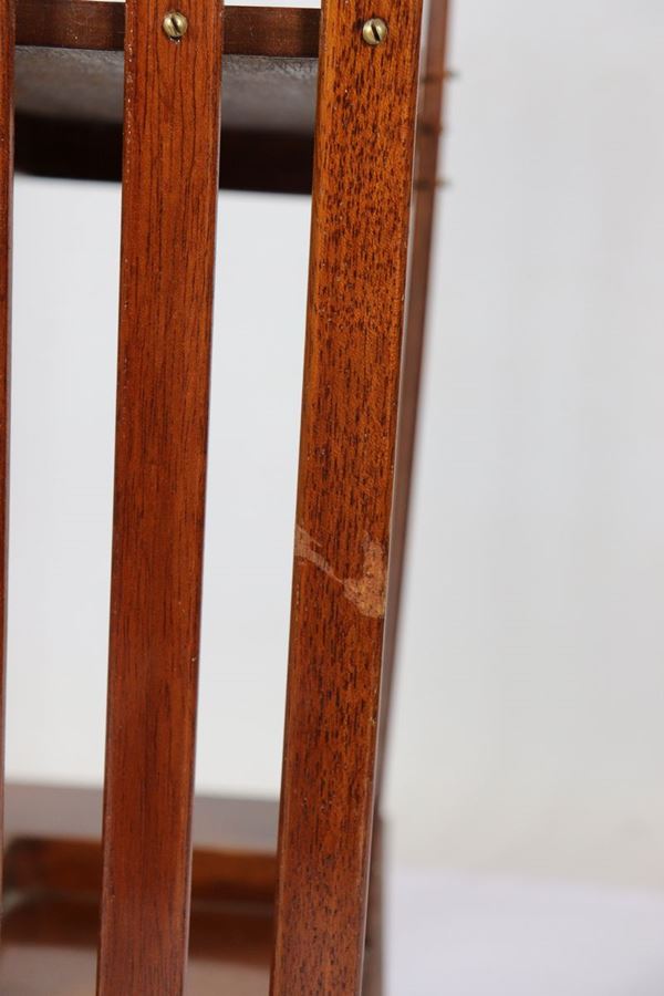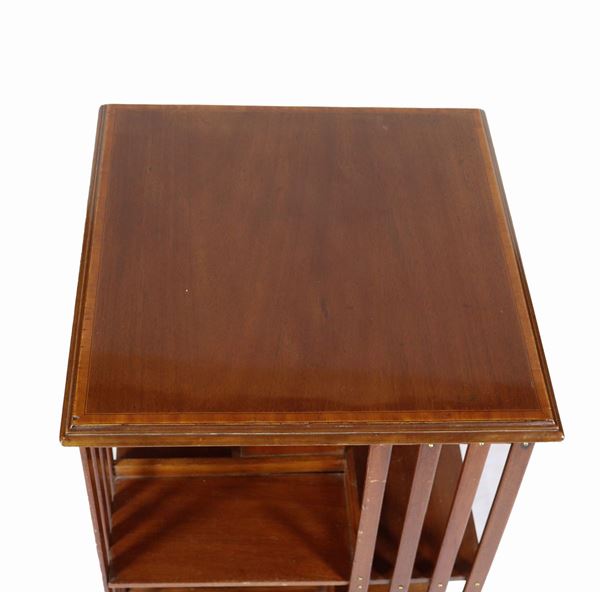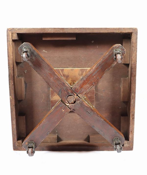 a forma quadrata con filettatura intarsiata in legno satinato sul piano, cm 47 x 47 x 85 h.
