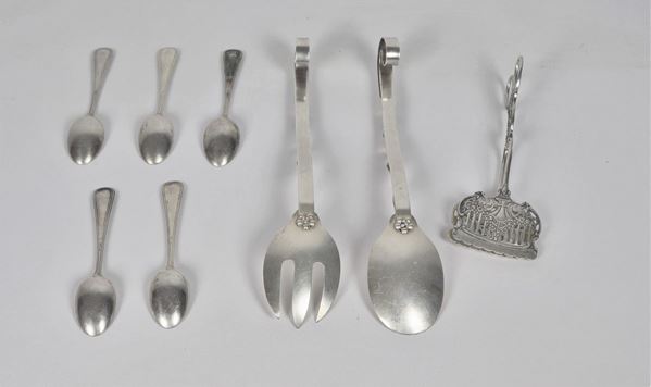 Lotto in argento cesellato e sbalzato (8 pz) gr. 380