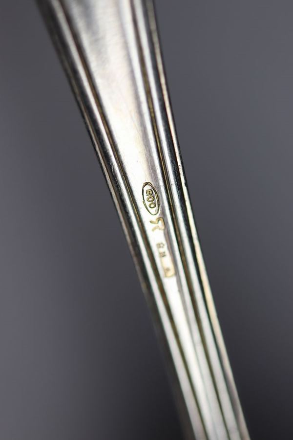 composto da: 2 posate per insalata, una pinza per pane e cinque cucchiaini da tè.