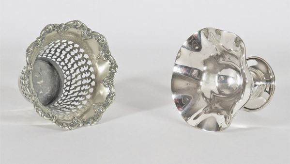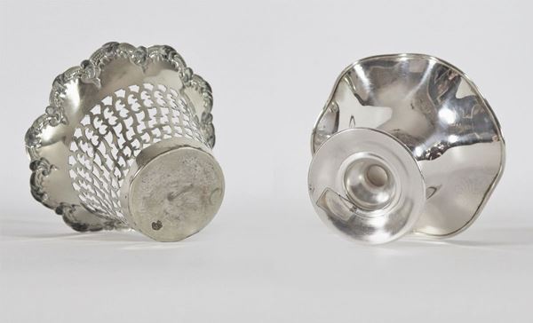Lotto in argento di un cestino traforato e un'alzatina a forma di fiore gr. 200