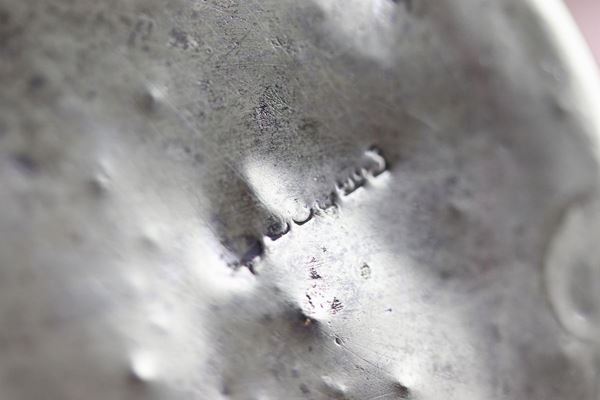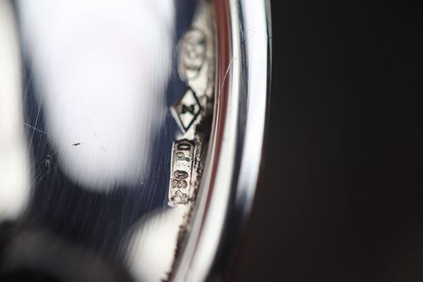 il cestino traforato presenta bolli Inghilterra Regina Vittoria e ammaccatura al bordo, Diametro massimo cm 13 x 10 h.
