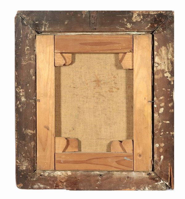 antica cornice in legno dorato e laccato, cm 33 x 28.