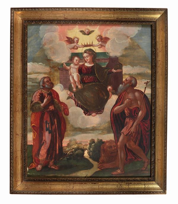 "Madonna in gloria con Bambino e Santi" piccolo dipinto ad olio su tavola