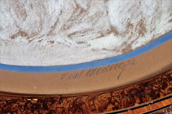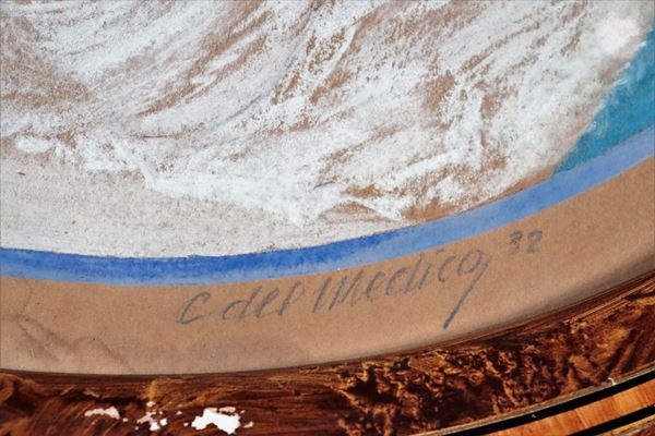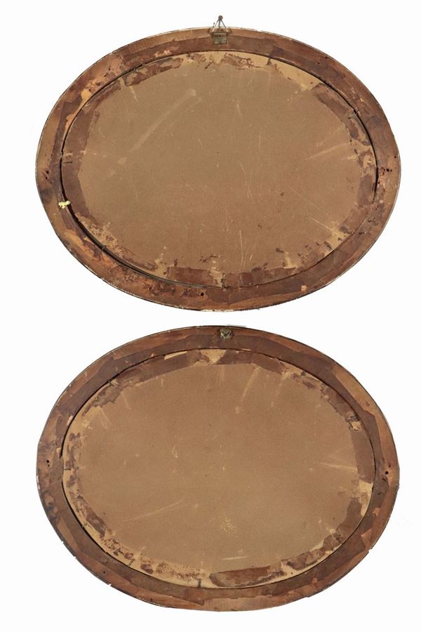 "Nudi di ragazze distese". Firmati e datati 1932. Coppia di piccoli dipinti ovali a tecnica mista con pastello e biacca