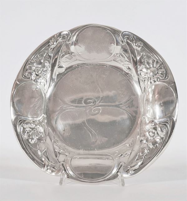 cesellata e sbalzata a motivi Liberty, diametro cm 25.