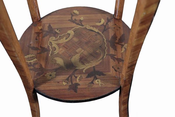 Piccolo gueridon francese in bois de rose e legni pregiati