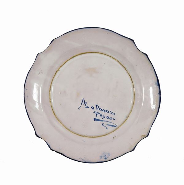 Piccolo piatto in maiolica lustrata di Pesaro firmato Molaroni
