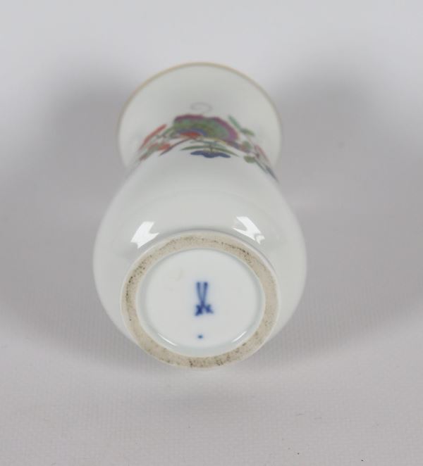 con decorazioni policrome a motivi di fiori e farfalla su fondo bianco, altezza cm 10,5.