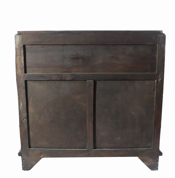 interamente intarsiata a motivi floreali, anfore, cesti e volatili. Calatoia formante scrittoio con all'interno tiretti e sportellino centrale, tre tiretti sottostanti, cm 130 x 60 x 112 h.
