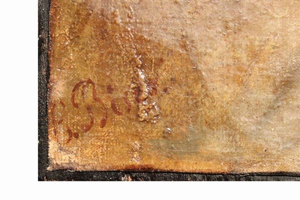 "Ritratto di ragazza araba". Firmato. Dipinto ad olio su compensato