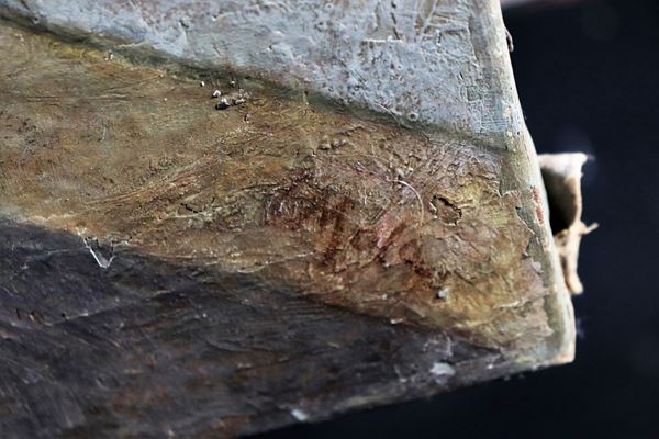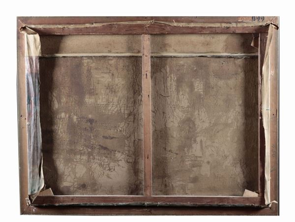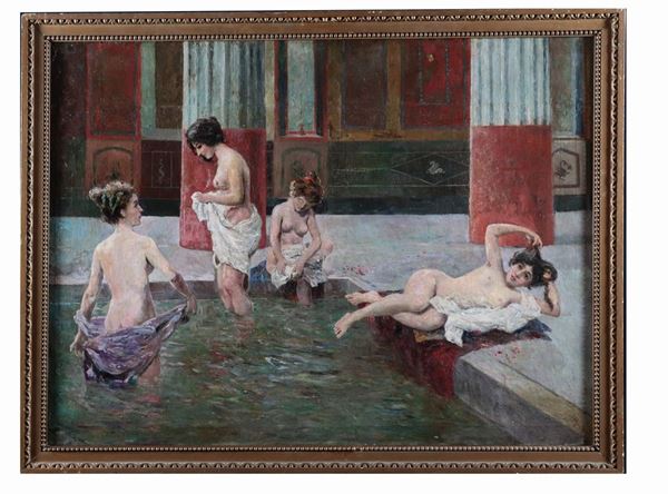 "Scena pompeiana con ancelle al bagno". Firmato. Dipinto ad olio su tela
