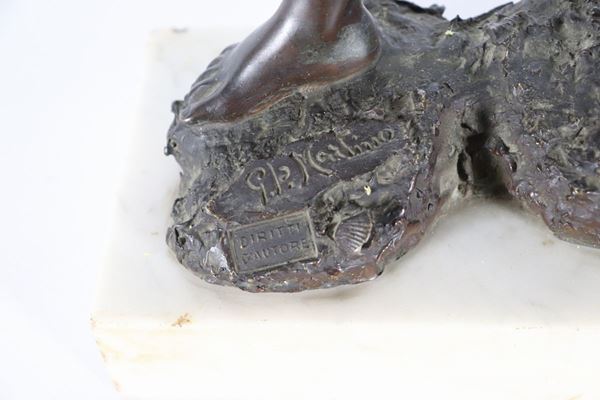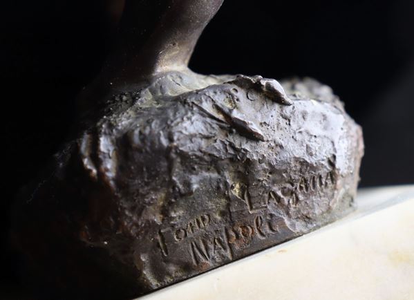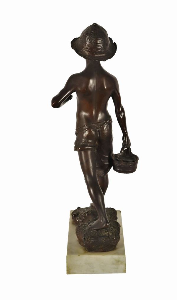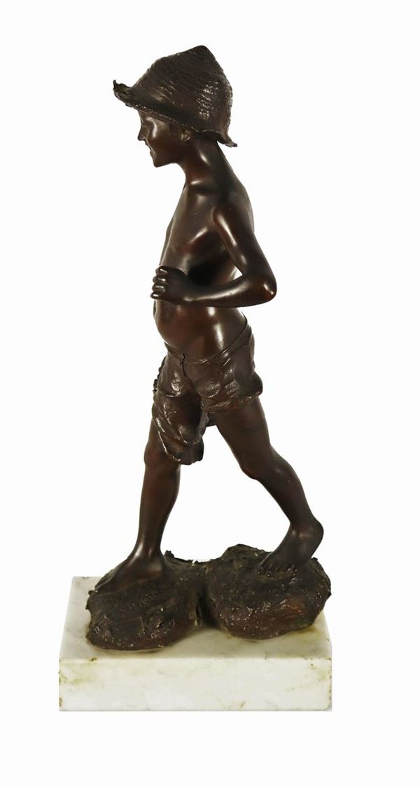 Scultura napoletana in bronzo "Pescatorello". Firmato.