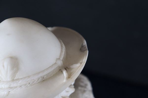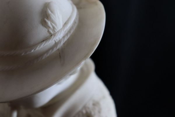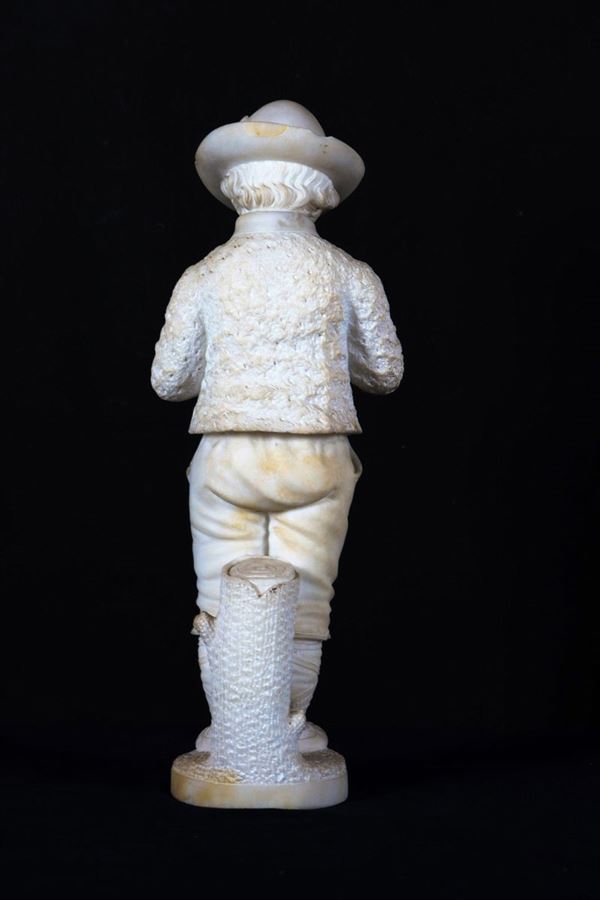 Scultura "Pastorello abruzzese" in marmo bianco Alabastrino