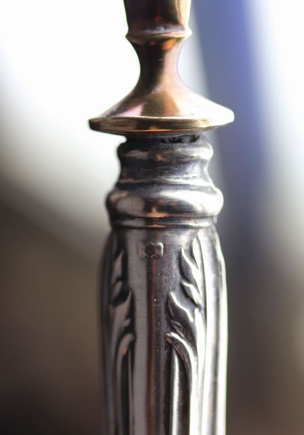 cesellato e sbalzato, composto da: forchetta, coltello e cucchiaio, annesso astuccio.