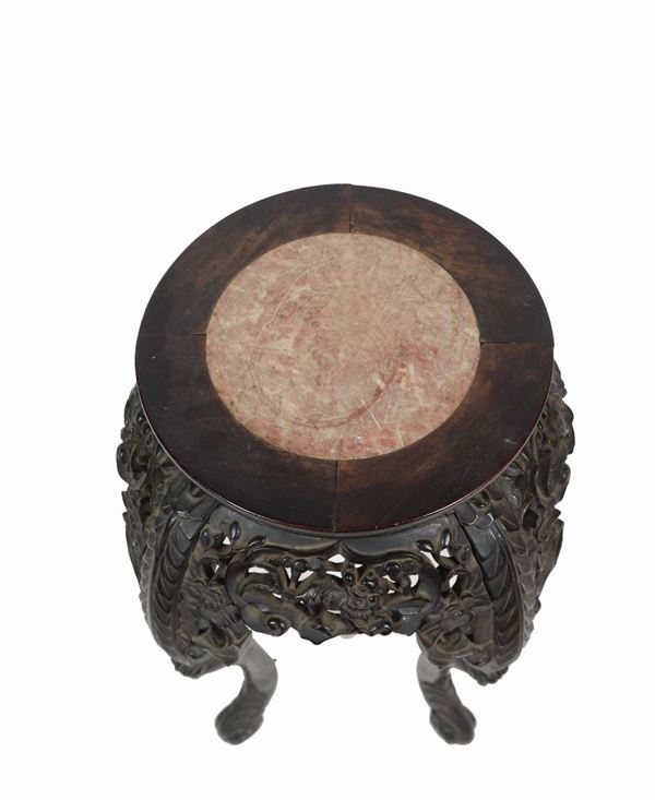 Sgabello cinese in legno laccato nero con pianetto in marmo