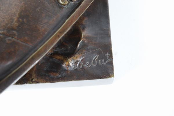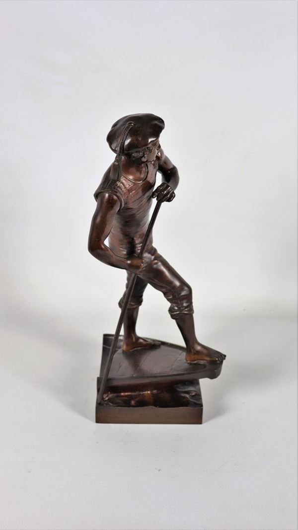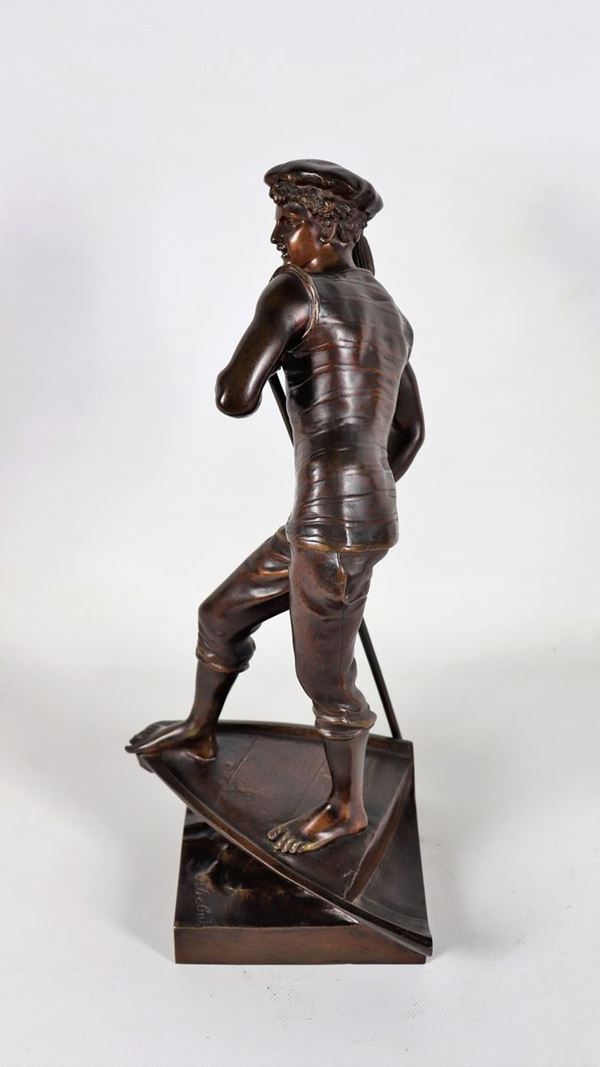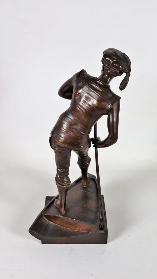 Antica scultura francese in bronzo "Gondoliere". Firmata.