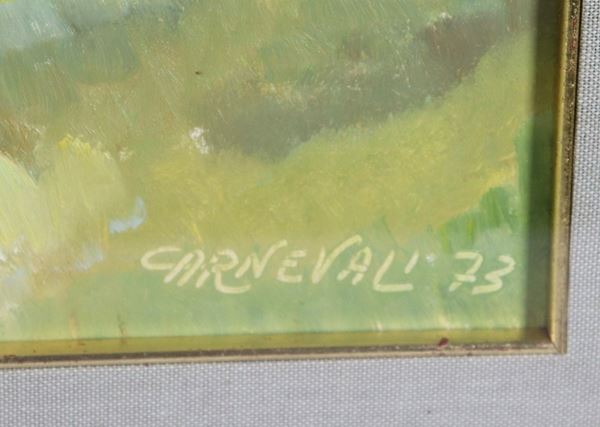 "Appia Antica" e "Paesaggio campestre". Firmati, lotto di due dipinti ad olio su masonite e tela
