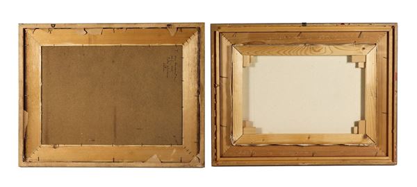 cornici in legno dorato e passepartout, cm 35 x 50 e cm 35 x 51.