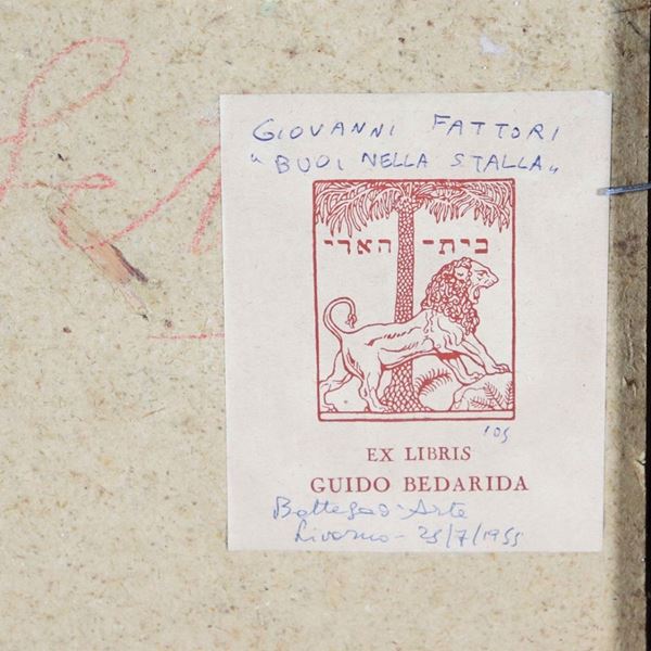 "Buoi nella stalla" piccolo dipinto ad olio su cartone