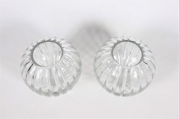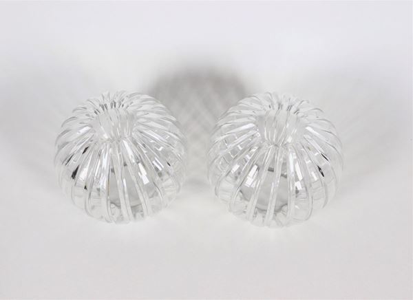 Coppia di piccole bowls in cristallo baccellato. Firmate