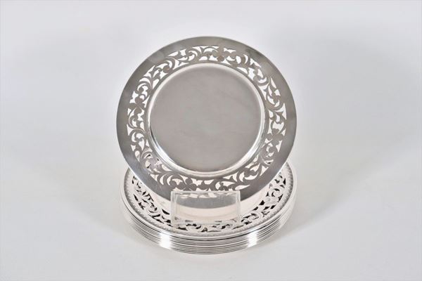 Lotto di dodici piattini in argento gr. 1700