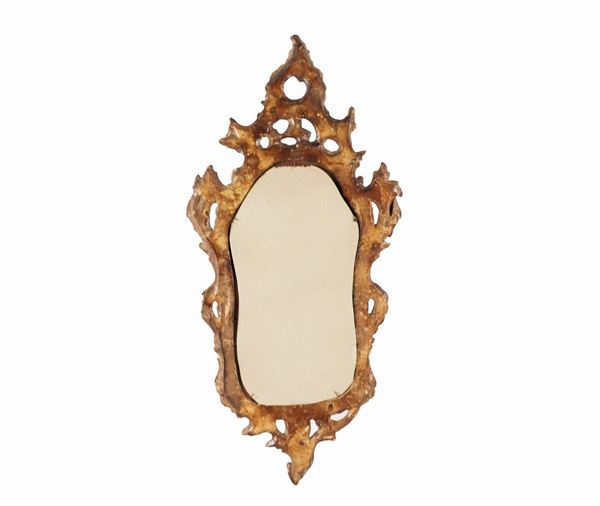 Specchiera in legno dorato e laccato con intagli a motivi Luigi XV
