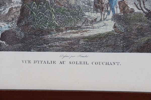 Stampa francese colorata "Paesaggio italiano al tramonto"
