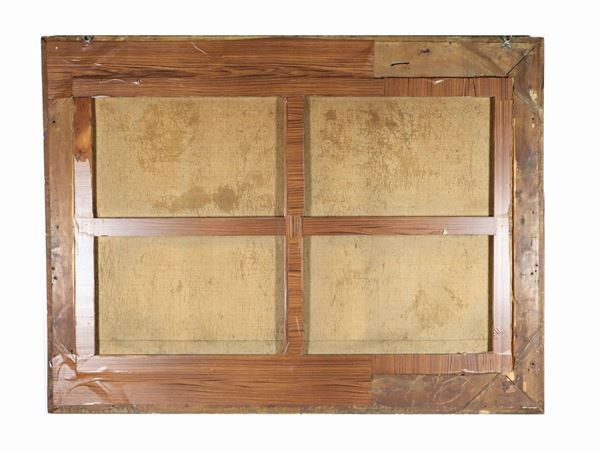 antica cornice dell'epoca in legno dorato e riccamente intagliato. La cornice presenta qualche difetto, cm 112 x 164.