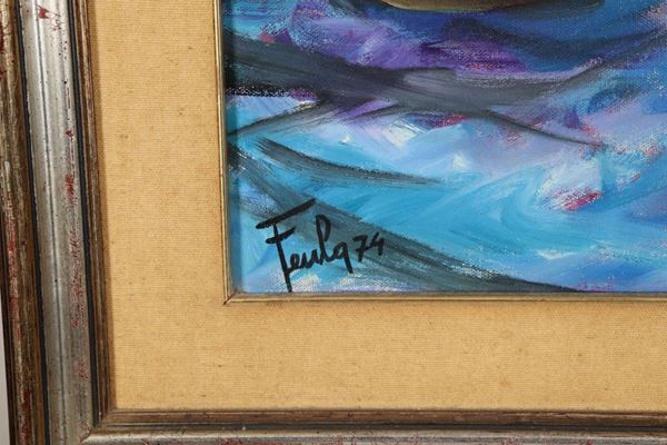 La Feula partita da una pittura realistica giunse, attraverso il postimpressionismo, ad una visione moderna e di larga fattura, adoperando spesso la spatola. Cornice in legno argentato e passepartout, cm 70 x 50.