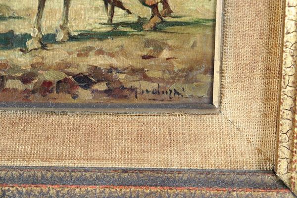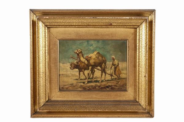 Firmati. "Scene arabe" coppia di piccoli dipinti ad olio su compensato