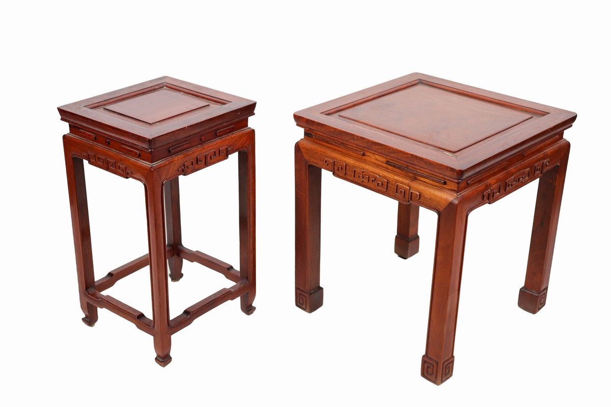 Lotto di due piccoli sgabelli cinesi in legno di rosewood