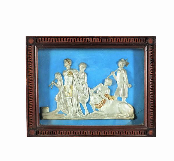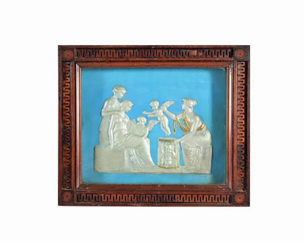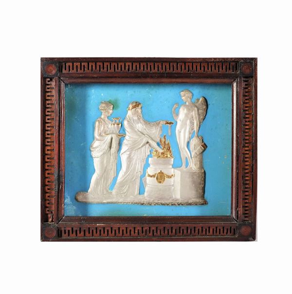 Lotto di tre altorilievi neoclassici argentati e dorati "Scene mitologiche"