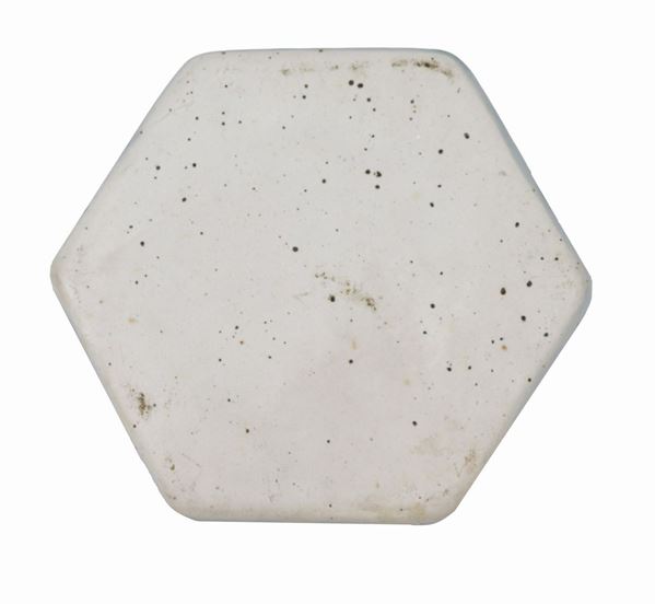 a forma esagonale, decorato a motivi di fiori e insetti, cm 22 x 20 x 3 h.