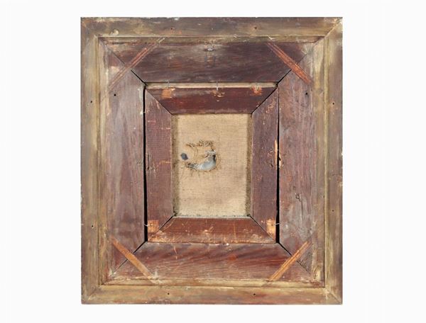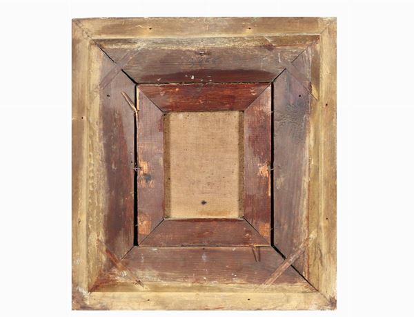 cornici in legno dorato ed intagliato, cm 22 x 17,5 ciascuno.