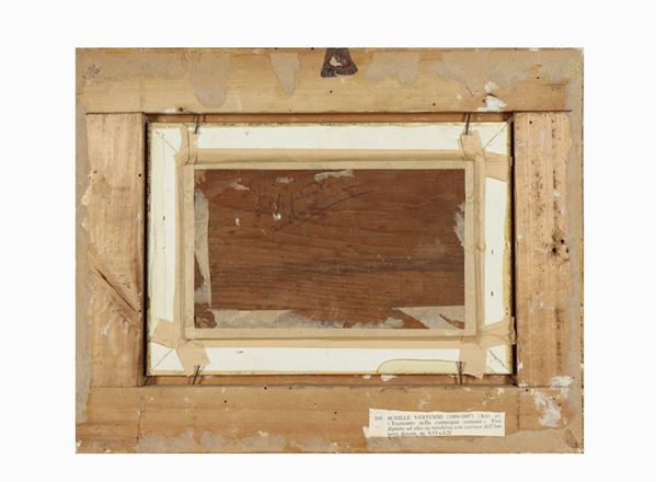 "Tramonto nella campagna romana e contadino" piccolo dipinto ad olio su tavoletta