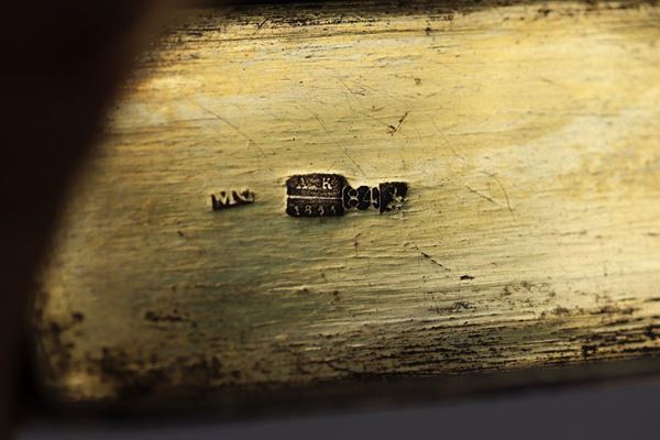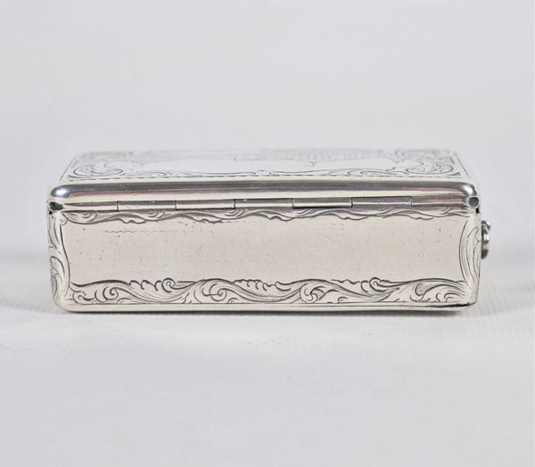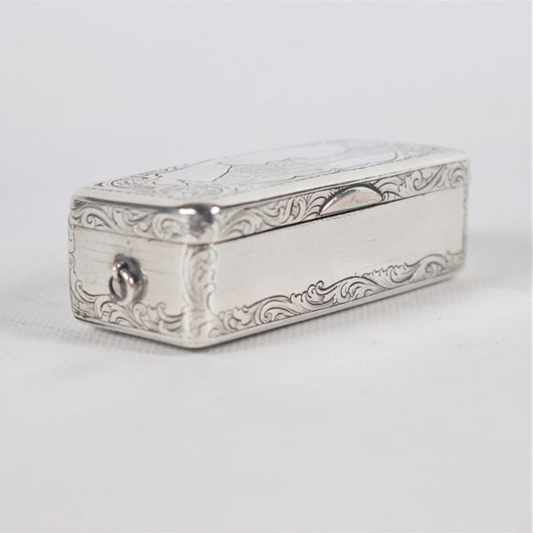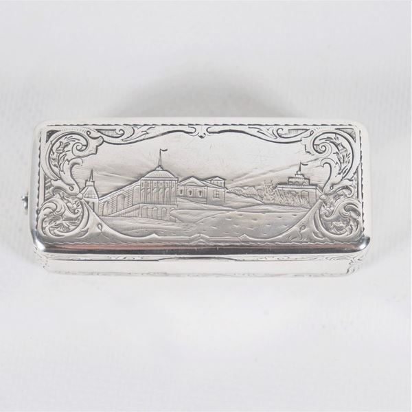 cesellata a motivi di volute, sul coperchio "Veduta di Mosca", cm 8 x 3,5.