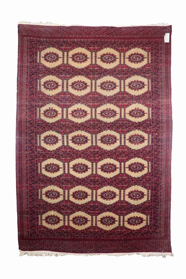 a motivi di rombi su fondo rosso. Lieve difetto.