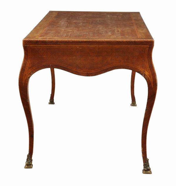Tavolo Scrivania da centro di linea Luigi XV in bois de rose ed ebano viola