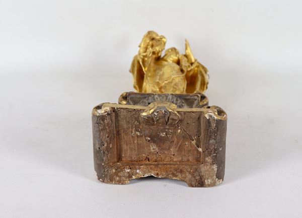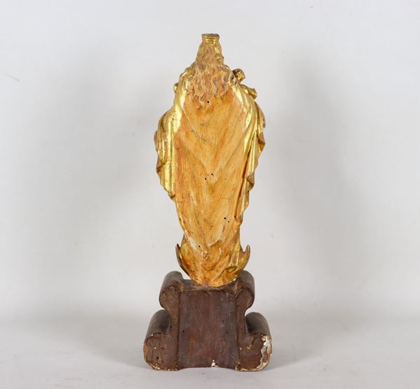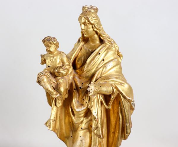 Antica scultura "Madonna con Bambino" in legno dorato ed intagliato