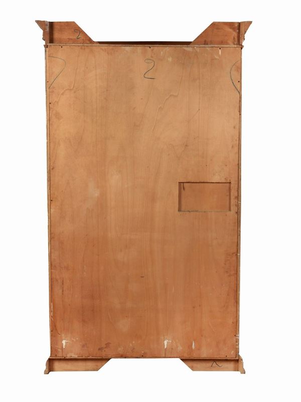 interno in acero con cassettiera. Secolo XX, cm 120 x 65 x 208 h.