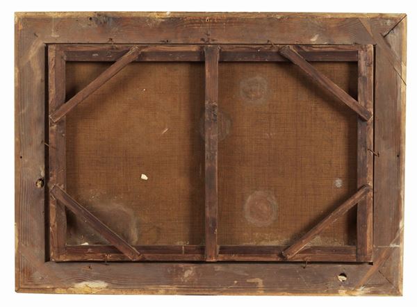 opera del pittore francese che studiò presso Girodet e Bidauld. Nel 1827 entrò nello studio bottega di Ingres dove apprese la pittura di paesaggio in stile accademico che modificò, dopo i suoi esordi, in una pittura all'aperto ricercando soggetti in Italia, dove effettuò numerosi viaggi, ed in Grecia. Affrontò anche temi romantici ispirati dai suoi viaggi in Oriente, in particolare Turchia ed Egitto. Cornice dell'epoca in legno dorato ed intagliato, cm 54 x 81.